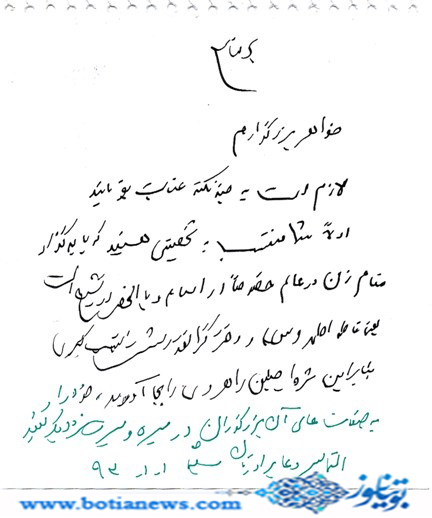 خانمی از سرلشکر حاج قاسم سلیمانی درخواست کرد یک دست نوشته ای به یادگار برایش بنویسد،که به شرح زیر است :