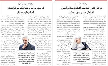 روزنامه شرق سخنان هاشمی و قاسم سلیمانی در مورد سوریه به شکل خاصی منعکس کرده است.
