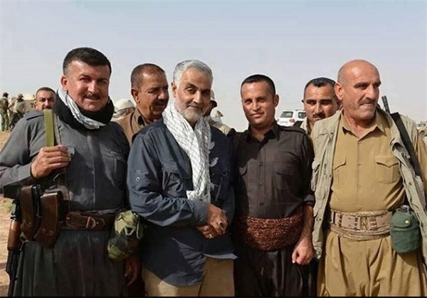 حاج قاسم سلیمانی در جمع پیشمرگان کرد